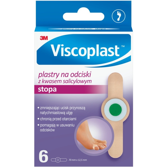Plastry na odciski VISCOPLAST, z kwasem salicylowym,70x12,5mm, pudełko, 6szt.