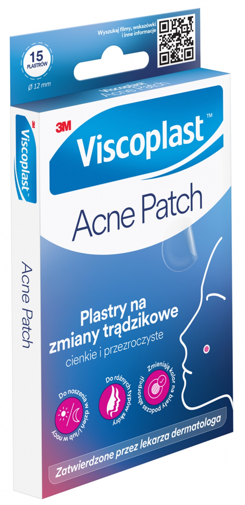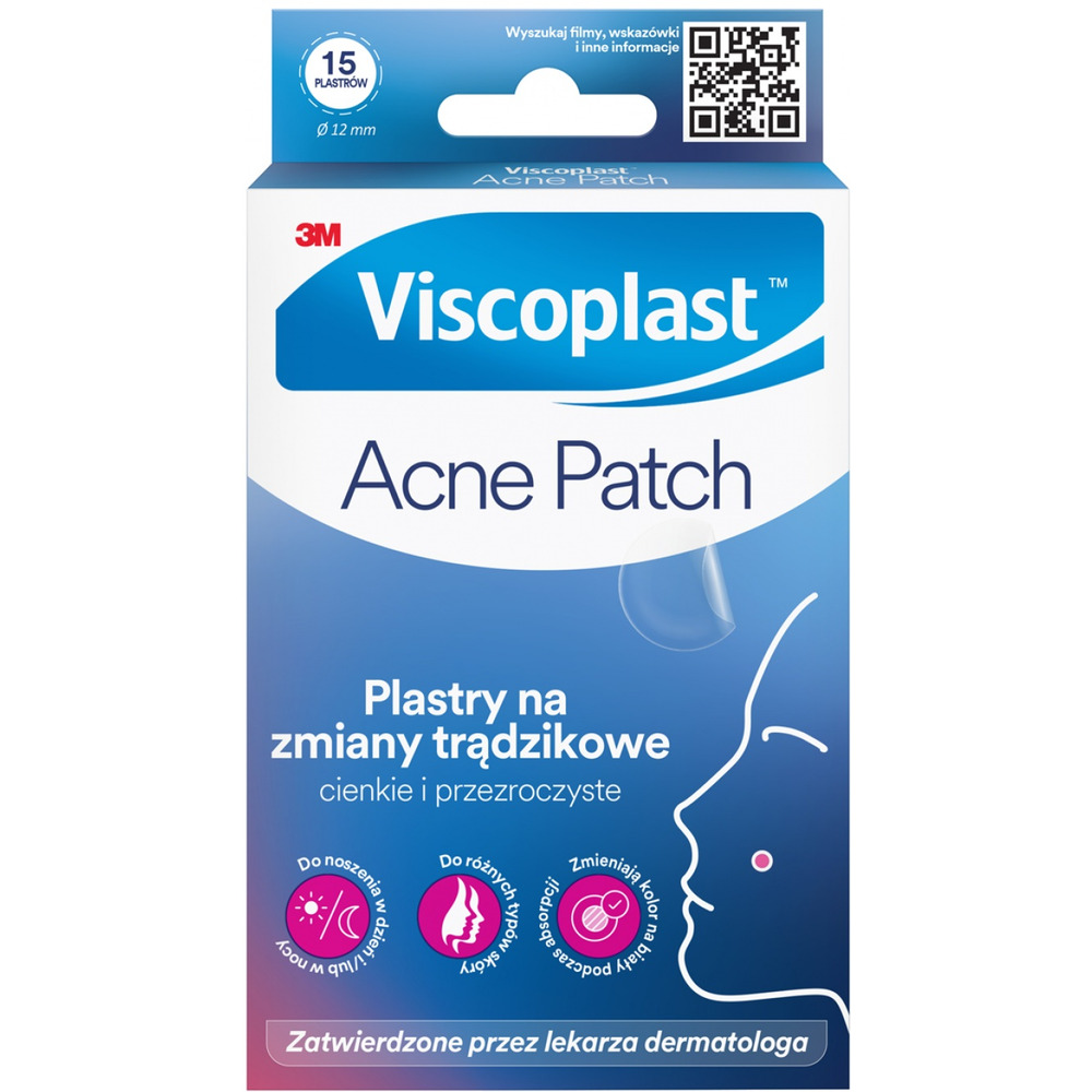 Plastry na zmiany trądzikowe VISCOPLAST-3M Acne Patch, ? 12 mm, 15 szt., pudełko