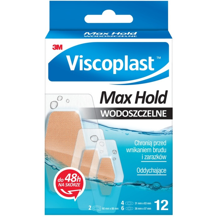 Plastry VISCOPLAST Max Hold, wodoszczelne, 3 rozmiary, pudełko, 12szt.