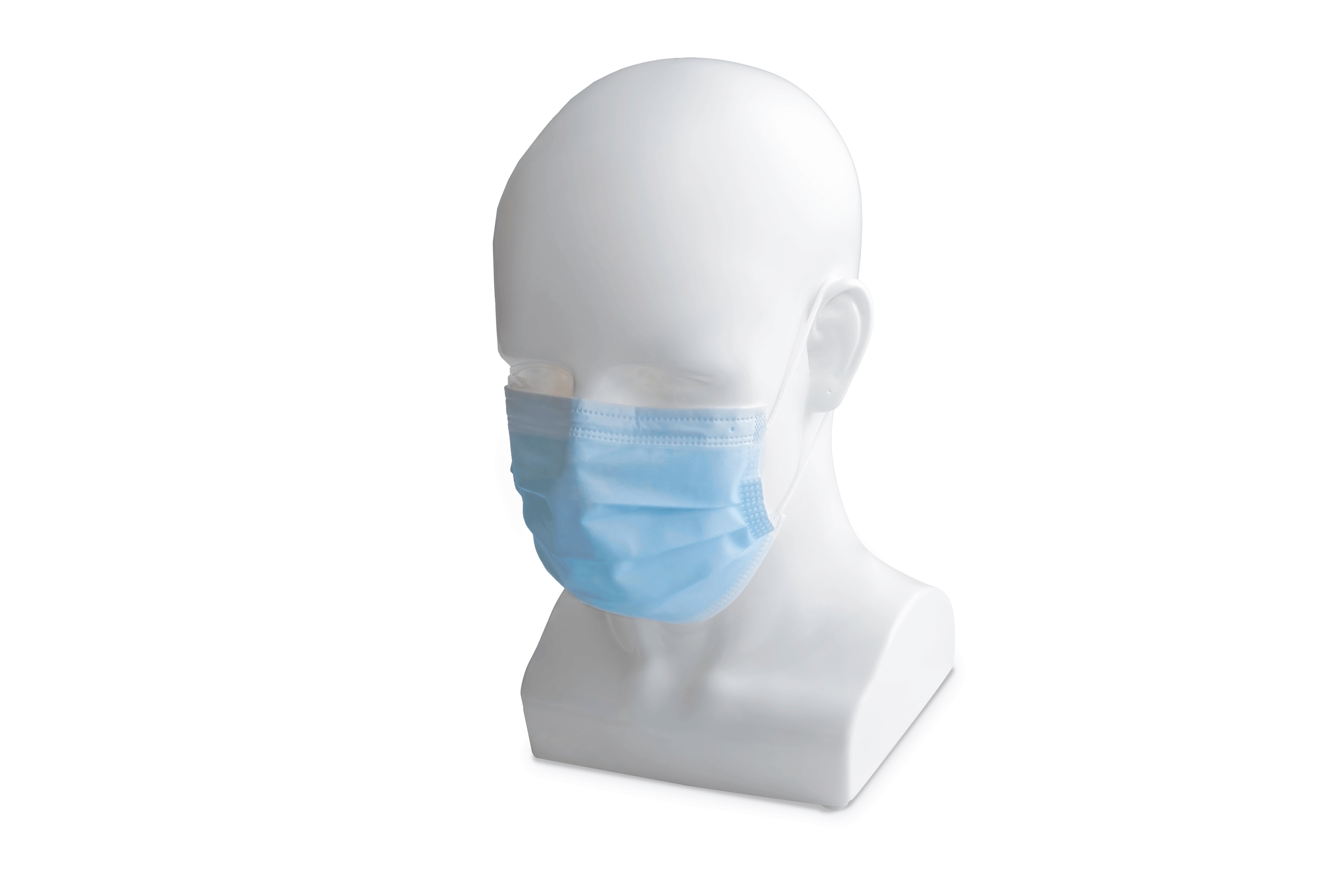 3-warstwowa maska z włókniny z gumkami, niepyląca. Miękki drucik zatopiony w plastiku zapewnia odpowiednie przyleganie do twarzy.