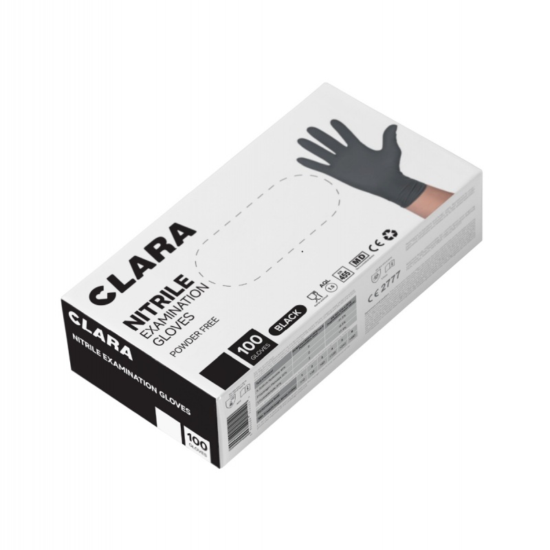 Rękawice nitrylowe bezpudrowe CLARA, 100 szt., rozmiar XS, czarne
