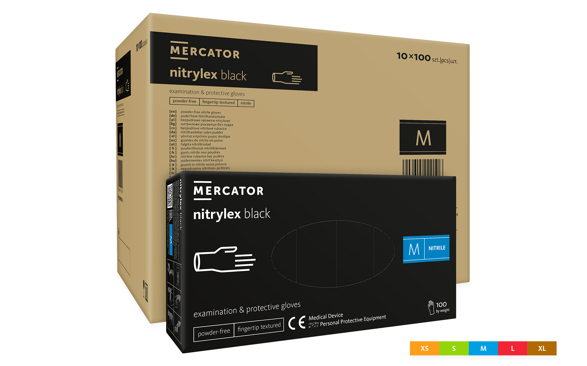 Rękawice nitrylowe bezpudrowe diagnostyczne MERCATOR, nitrylex black, (100 szt.), rozmiar M, czarne