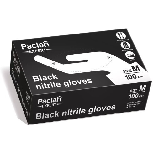Rękawice nitrylowe czarne M 100szt. PACLAN