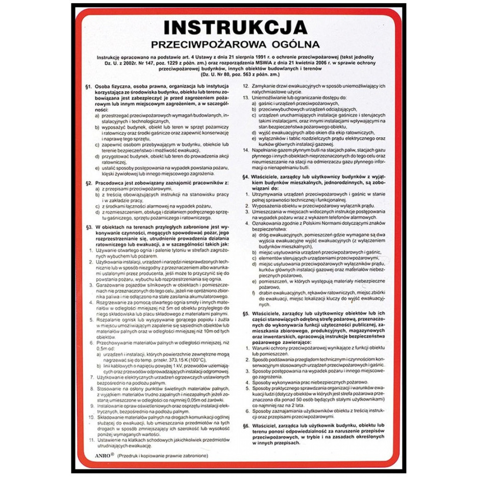 Naklejka INSTRUKCJA POSTĘPOWANIA NA WYPADEK POŻARU Z-IP1-P /3099ZN