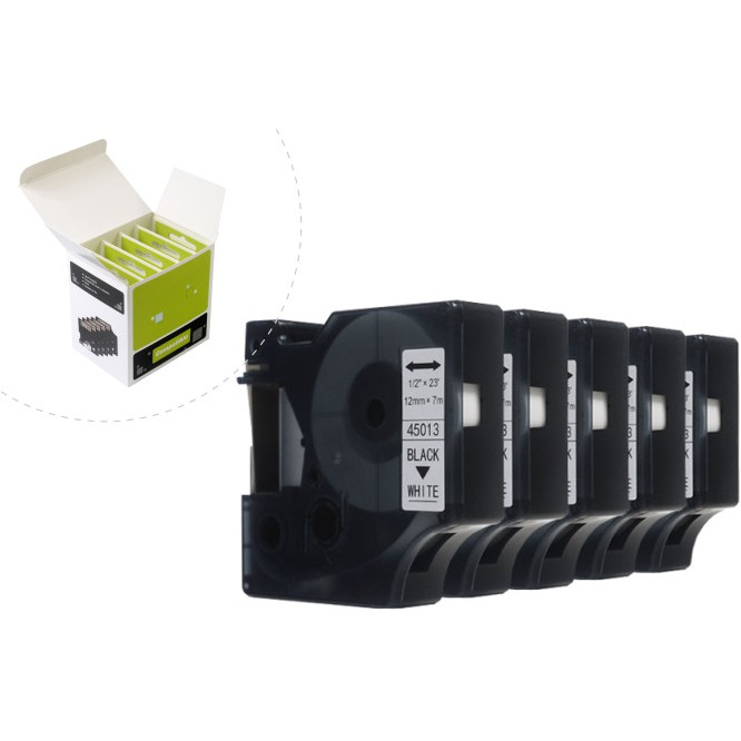 Taśma JetWorld Zamiennik Dymo D1 Czarny na Białym 12mm x 7m (5szt.) LM100, LM100+, LM200, LM300, LM400, LM420P, LM350, LM350D, LM360D, LM450D, LM260P, LM120P, LM500TS, LM160, LM210D, LM280, LM150, LM220 (45013) (S0720530)