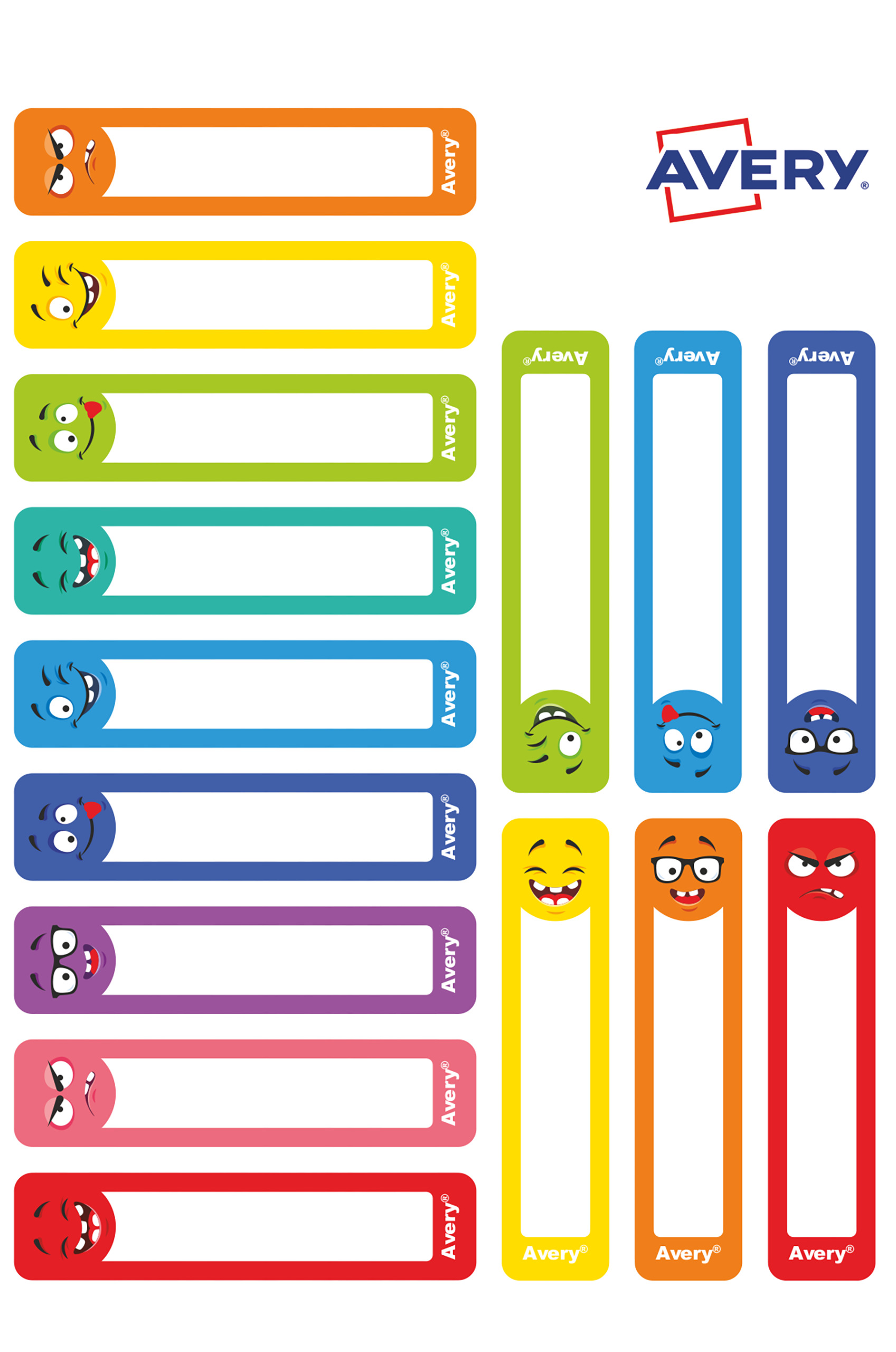 Naklejki na przybory do pisania; 50 x 10 mm , 30 naklejek.; kolorowe buźki, AVERY RESMI30S