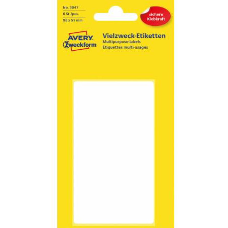Trwałe minietykiety do opisywania ręcznego, 6 etyk./op., 98 x 51 mm, białe, AVERY ZWECKFORM, 3047