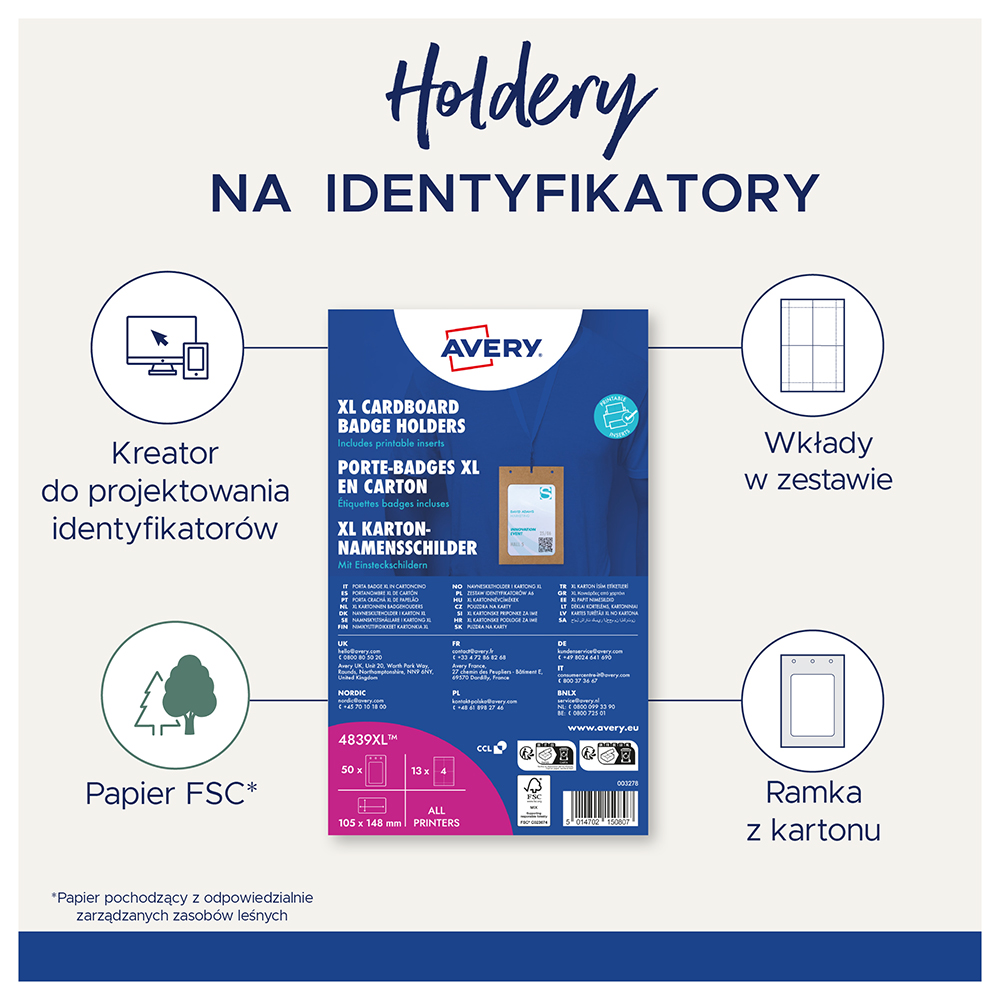? 50 ekologicznych holderów na identyfikatory wykonanych w 100% z brązowej tektury z certyfikatem FSC?.