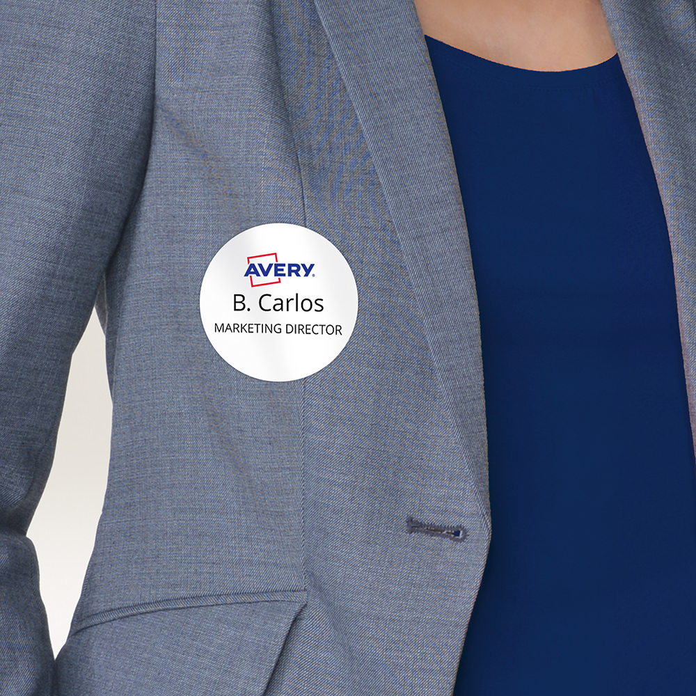 Samoprzylepne identyfikatory A4, 20 ark, okrągłe Q 65 mm, białe, folia, USUWALNE, AVERY ZWECKFORM, J4881-20