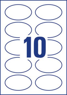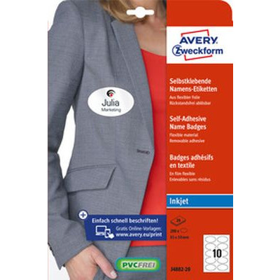 Samoprzylepne identyfikatory A4, 20 ark, owalne 85 x 50 mm, białe, folia, USUWALNE, AVERY ZWECKFORM, J4882-20