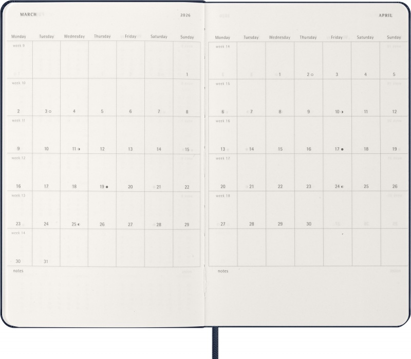 Kalendarz/planer Moleskine jest datowany od stycznia do grudnia 2026 r.