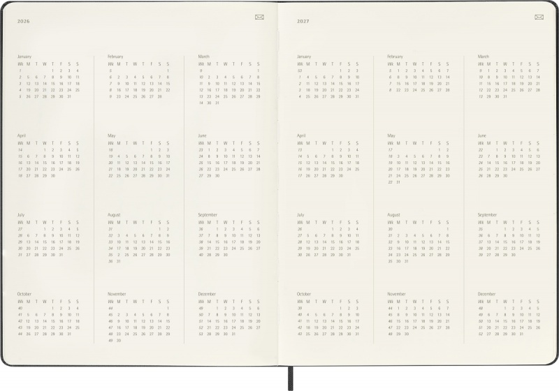 Kalendarz miesięczny MOLESKINE 2026, 12M, XL, twarda oprawa, 19x25cm, czarny