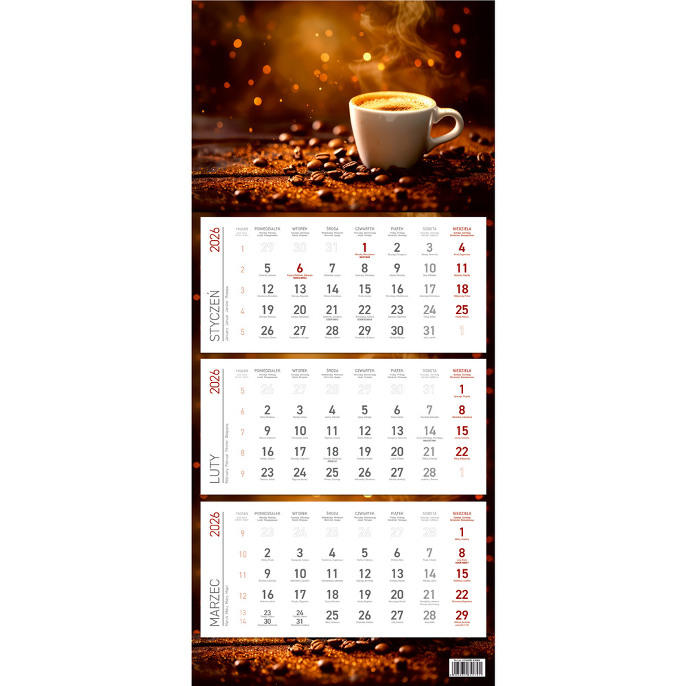 Kalendarz trójdzielny ekonomiczny KS045B KAWA 2026 WOKÓŁ NAS