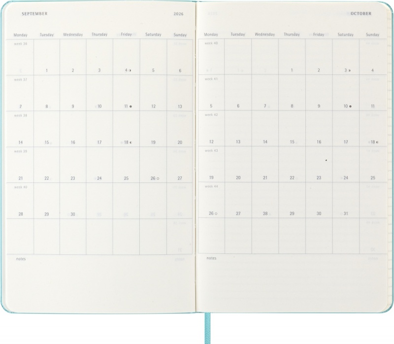 18-miesięczny tygodniowy kalendarz/planer Moleskine jest datowany od lipca 2025 do grudnia 2026.