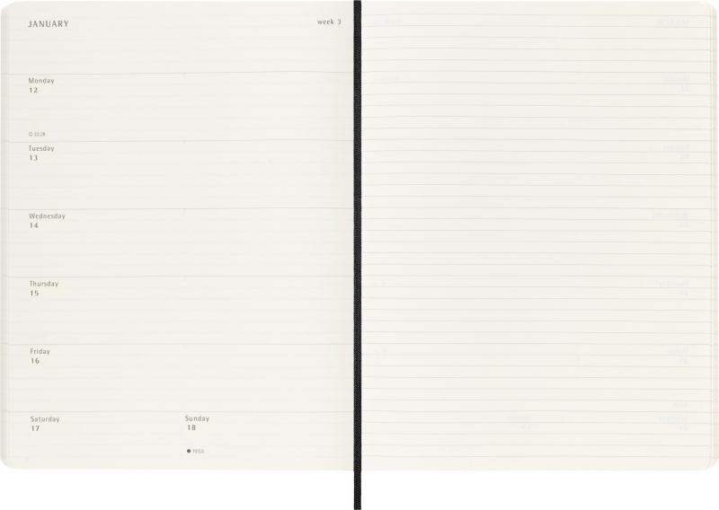 Kalendarz tygodniowy MOLESKINE 2025/26, 18M, XL, miękka oprawa, 19x25cm, czarny