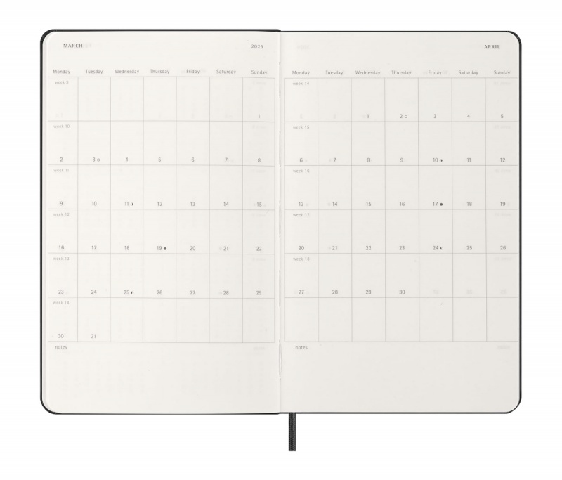 Tygodniowy notes Moleskine jest datowany od stycznia do grudnia 2026 r.