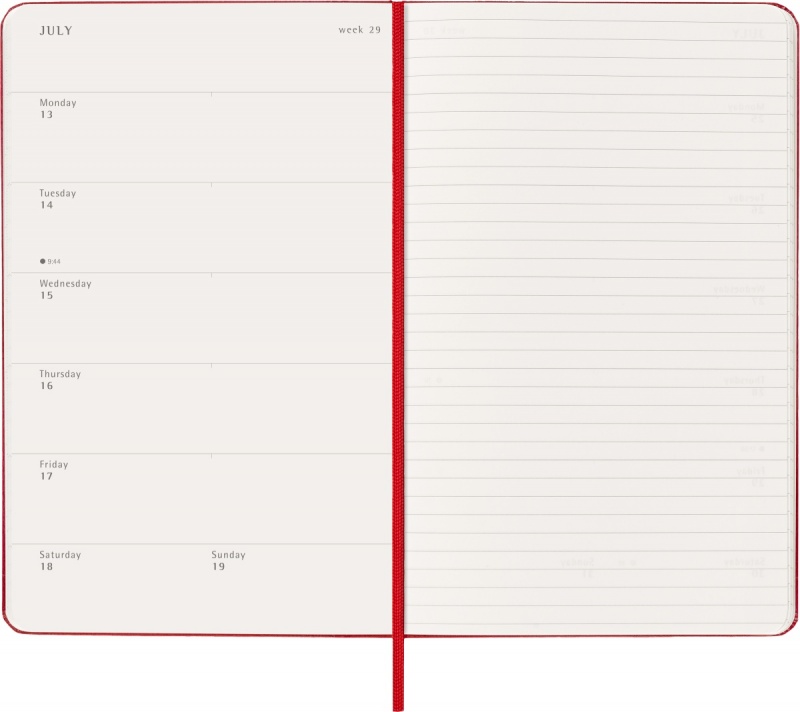 Kalendarz tygodniowy MOLESKINE 2026, 12M, L, twarda oprawa, 13x21cm, scarlet red