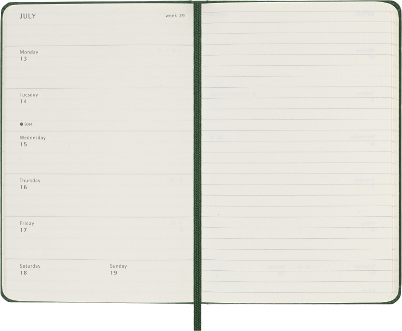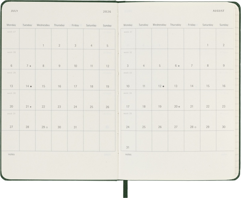 Kalendarz tygodniowy MOLESKINE 2026, 12M, P, twarda oprawa, 9x14cm, myrtle green