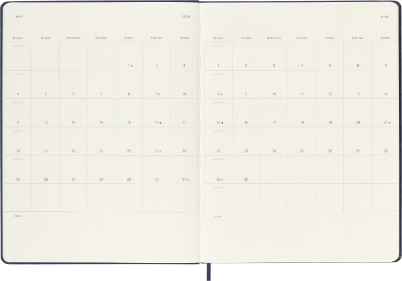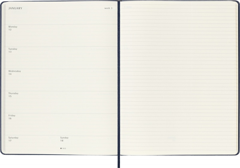 Kalendarz tygodniowy MOLESKINE 2026, 12M, XL, twarda oprawa, 19x25cm, sapphire blue