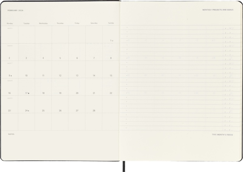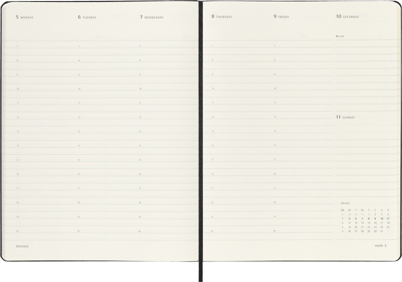 Kalendarz tygodniowy vertykalny MOLESKINE Pro 2026, 12M, XL, twarda oprawa, 19x25cm, czarny