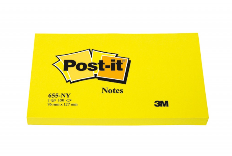 Bloczek samoprzylepny POST-IT (655N), 127x76mm, 1x100 kart., jaskrawy żółty