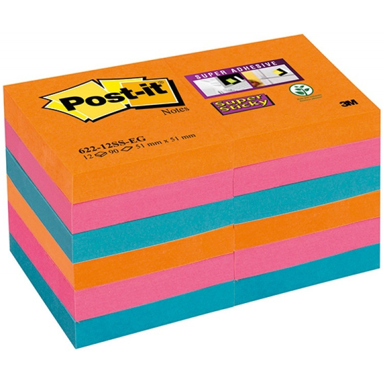 Bloczek samoprzylepny POST-IT Super Sticky (622-12SS-EG), 47,6x47,6mm, 12x90 kart., paleta Bangkok