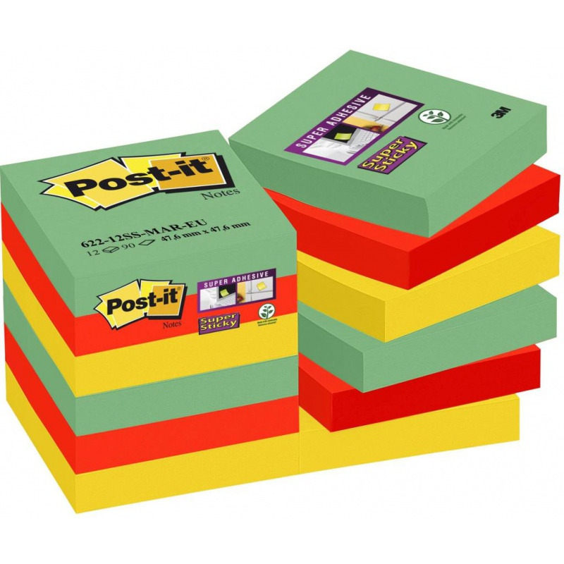 Bloczek samoprzylepny POST-IT Super Sticky (622-12SSMAR-EU), 47,6x47,6mm, 12x90 kart., paleta Marrakesz