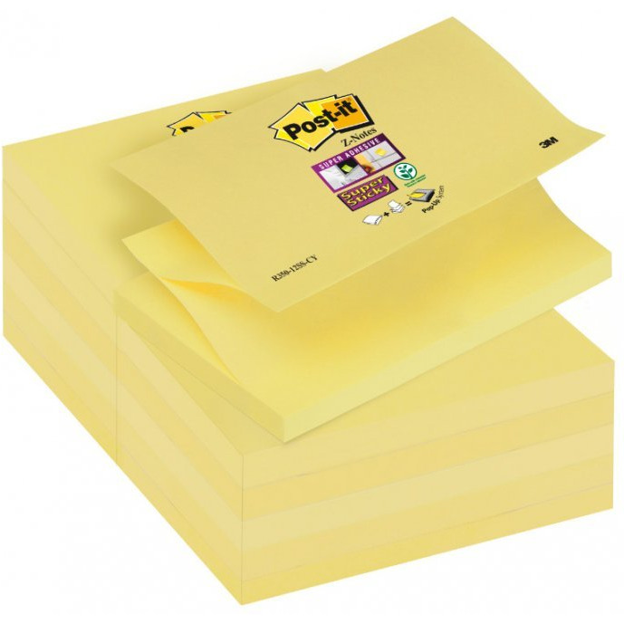 R350-12SS-CY Bloczki samoprzylepne Post-it Super sticky Z-Notes, żółte, 12 sztuk po 90 kartek, 76x127 mm
