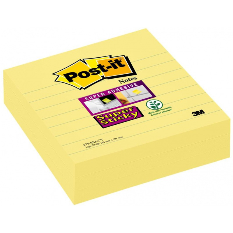 Karteczki samoprzylepne POST-IT Super Sticky XL w linię (675-SS3-CY), 101x10, 1mm, 3x70 kart., żółte