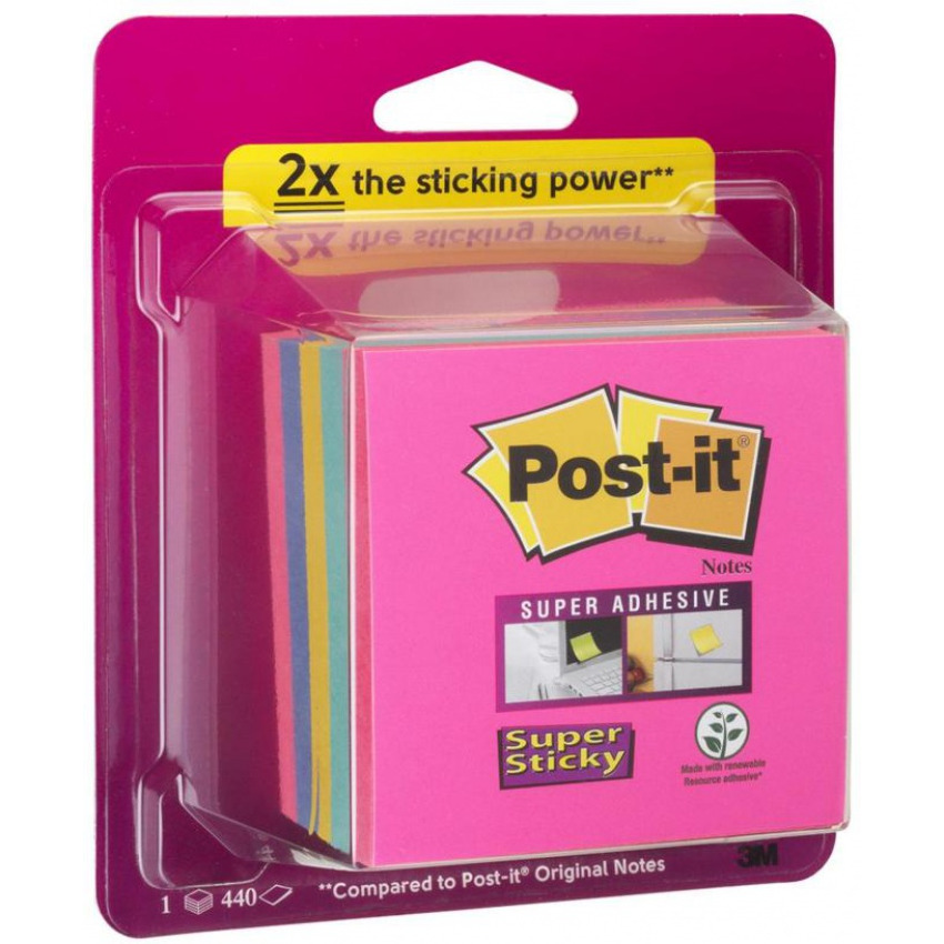 Kostka samoprzylepna POST-IT Super Sticky (2028-SS-RBWC), 76x76mm, 1x440 kart., mix kolorów