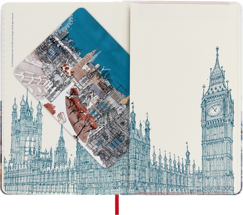 Ten notatnik to wyrazisty hołd dla Londynu, z misternymi i kolorowymi ilustracjami Carlo Stangi przedstawiającymi Tower Bridge na okładce i piętrowy autobus na wyklejce.