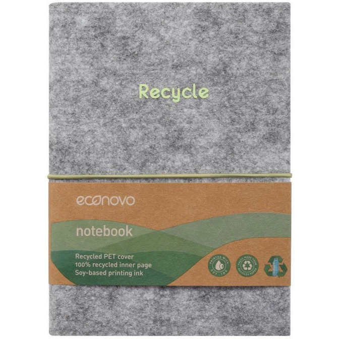 Notes ECONOVO, z recyklingu, okładka z filcu, w linie, 96 kart, 70gsm, szary