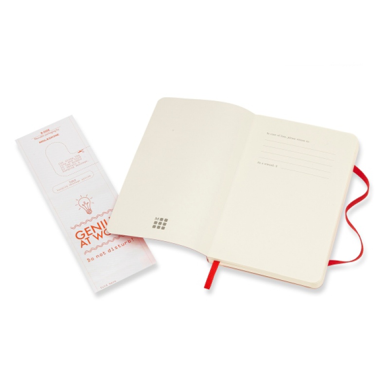 Notes Moleskine Classic P (9x14cm) gładki, miękka oprawa, czerwony, 192 strony Legendarna kolekcja notesów w różnych kolorach i wielkościach znana na całym świecie. Do produkcji został użyty standardowy bezkwasowy papier certyfikowany FSC? w kolorze kości słoniowej. Zrobiony z barwionej masy, doskonale nadaje się do zapisywania notatek długopisem oraz ołówkiem. FUNKCJE miękka oprawa zaokrąglone rogi elastyczne zamknięcie ? gumka pasująca do koloru okładki zakładka ? wstążka rozszerzalna kieszeń wewnętrzna z tektury i tkaniny papier o gramaturze 70 g/m? w kolorze kości słoniowej ROZMIAR: P 9 × 14 cm 192 strony UKŁAD: gładki