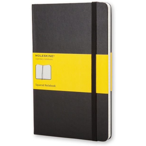 Notes Moleskine Classic P (9x14cm) w kratkę, twarda oprawa, czarny, 192 strony Legendarna kolekcja notesów w różnych kolorach i wielkościach znana na całym świecie. Do produkcji został użyty standardowy bezkwasowy papier certyfikowany FSC? w kolorze kości słoniowej. Zrobiony z barwionej masy, doskonale nadaje się do zapisywania notatek długopisem oraz ołówkiem. FUNKCJE twarda okładka zaokrąglone rogi elastyczne zamknięcie ? gumka pasująca do koloru okładki zakładka ? wstążka rozszerzalna kieszeń wewnętrzna z tektury i tkaniny papier o gramaturze 70 g/m? w kolorze kości słoniowej ROZMIAR: P 9 × 14 cm 192 strony UKŁAD: kratka