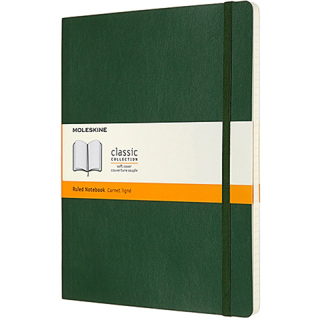 Notes MOLESKINE Classic XL (19x25cm), w linie, miękka oprawa, myrtle green, 192 strony, zielony