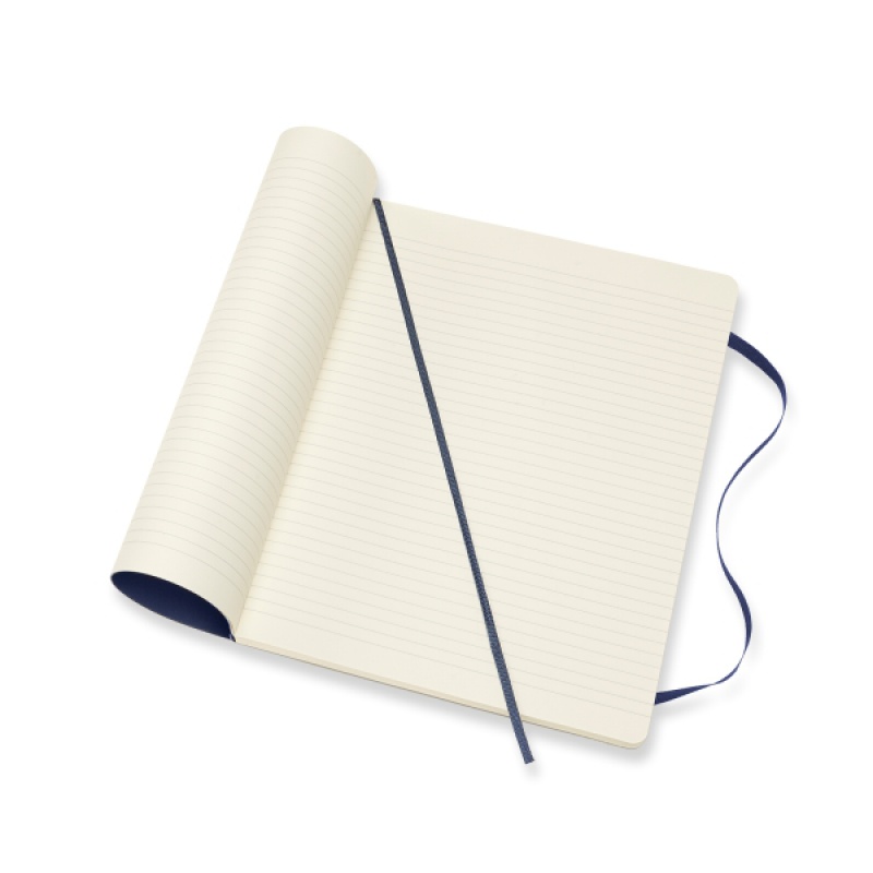 Notes Moleskine XL (19x25cm) w linie, miękka oprawa, sapphire blue, 192 strony Kolekcja notesów w różnych kolorach i wielkościach znana na całym świecie. Dostępna w miękkiej oprawie w bogatej kolorystyce dla wprowadzenia kolorów do dnia codziennego. Do produkcji został użyty standardowy bezkwasowy papier certyfikowany FSC? w kolorze kości słoniowej. Zrobiony z barwionej masy, doskonale nadaje się do zapisywania notatek długopisem oraz ołówkiem. Rozmiar: 19x25 cm Rodzaj: linie Okładka: miękka Kolor: sapphire blue Liczba stron: 192 Dodatkowo: zamykany na gumkę wstążkowa zakładka elastyczna kieszeń wewnątrz