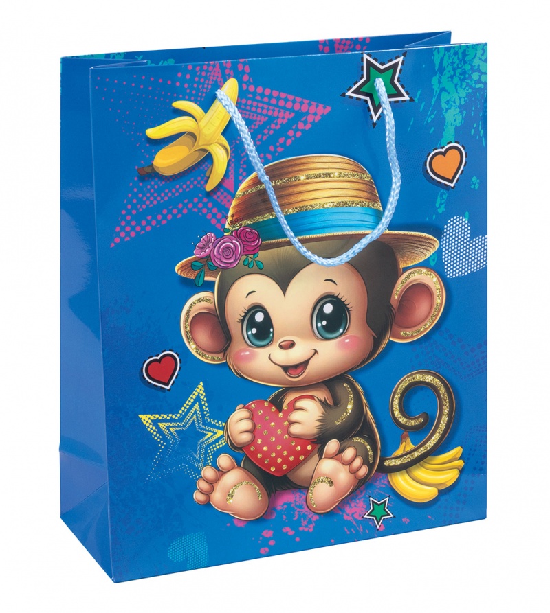 Torebka na prezenty DONAU HOME, laminowana, 25x30x10cm, dziecięca, sznurek, mix wzorów