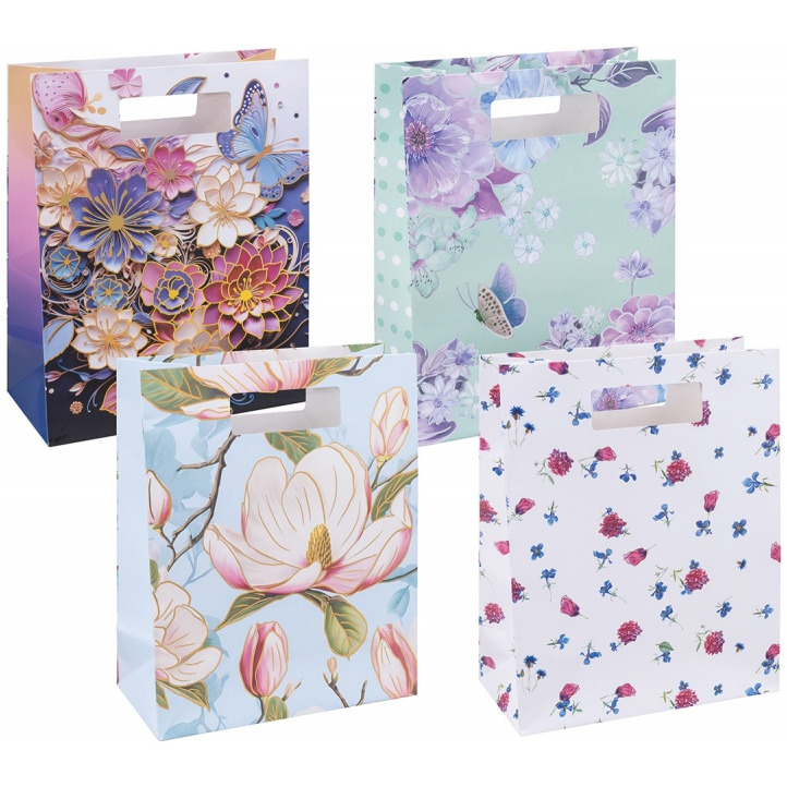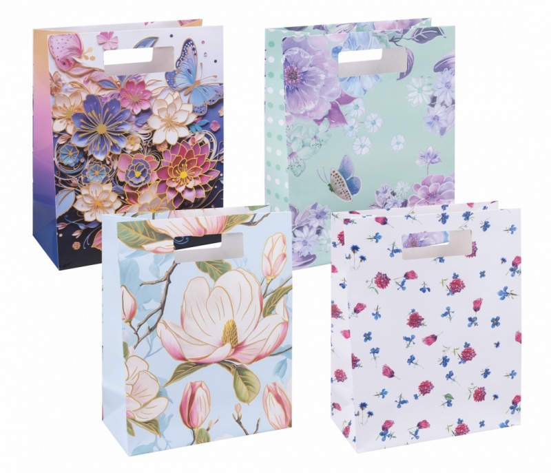 Torebka na prezenty DONAU HOME, laminowana, 26x32,5x10cm, całoroczna, z rączką, mix wzorów