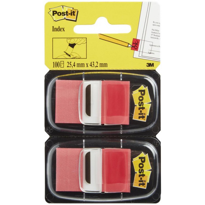 Zakładki indeksujące POST-IT (680-R2EU), PP, 25,4x43,2mm, 2x50 kart., czerwone
