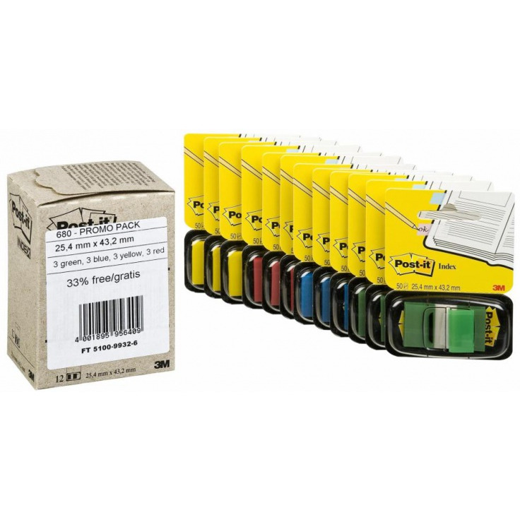 Zestaw promocyjny zakładek POST-IT (680 -P10+2), PP, 25,4x43,2mm, mix kolorów, 10+2 GRATIS