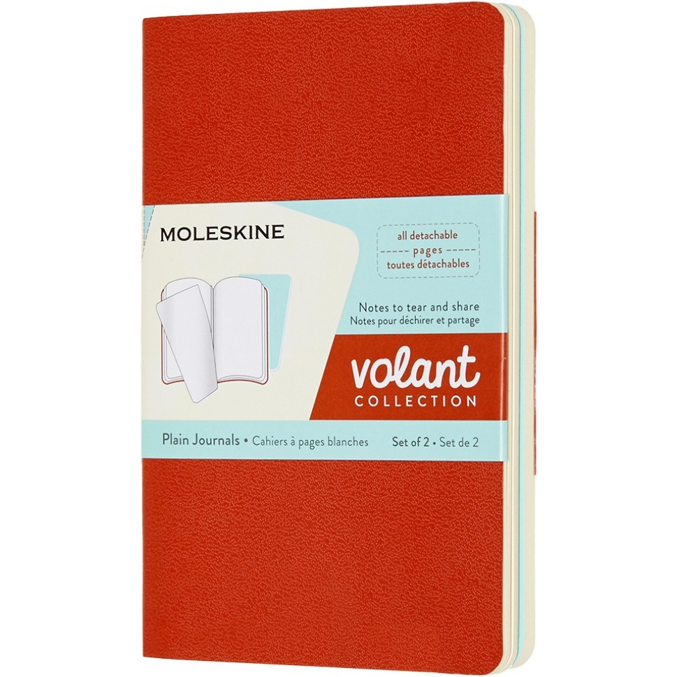 Zestaw 2 zeszytów MOLESKINE Volant, P, 9x14cm, gładki, 80 stron, coral orange/aquamarine
