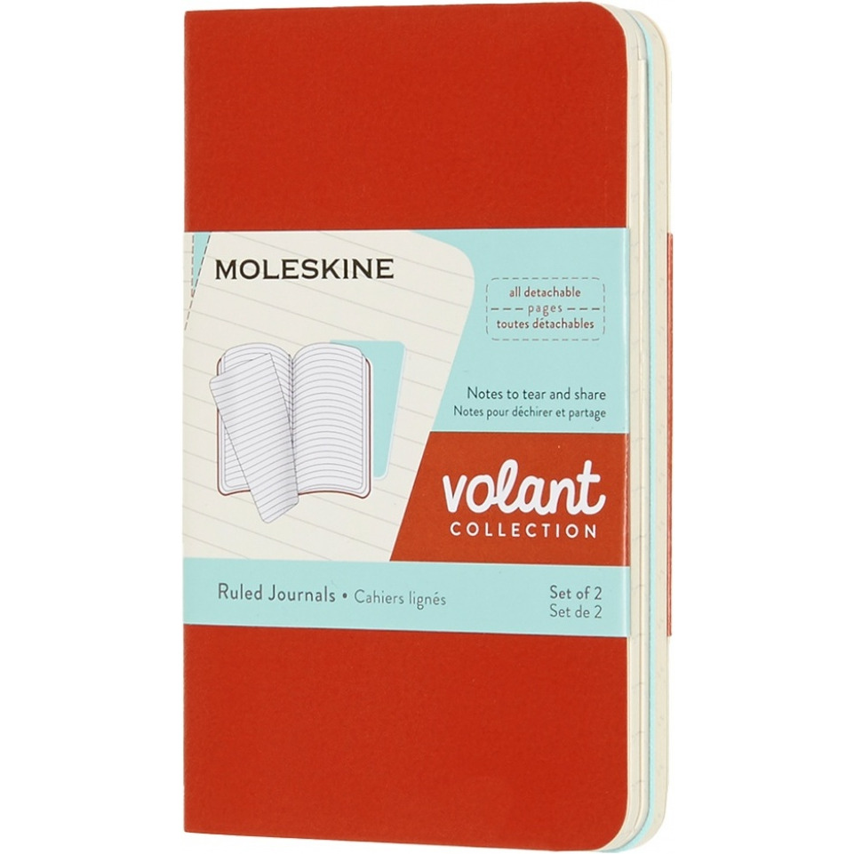 Zestaw 2 zeszytów MOLESKINE Volant, XS, 6,5x10,5cm, w linie, 56 stron, coral orange/aquamarine