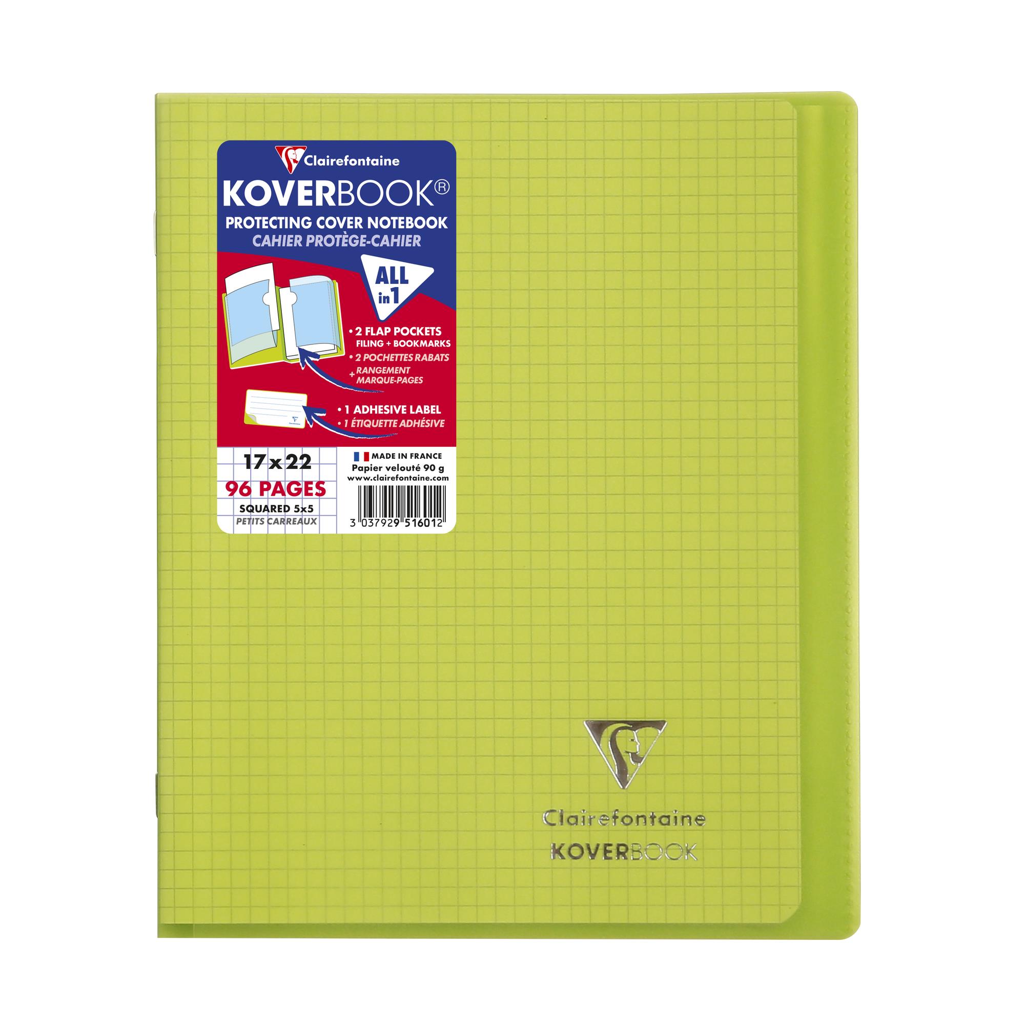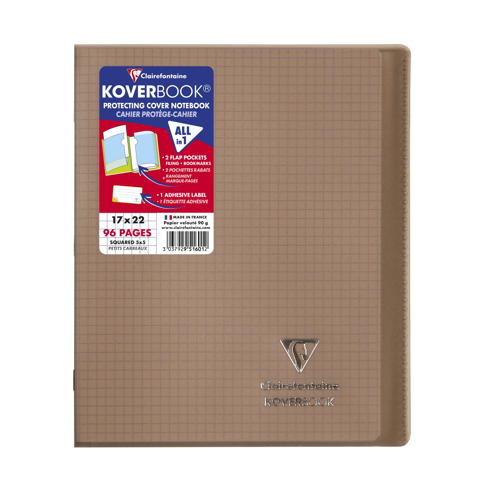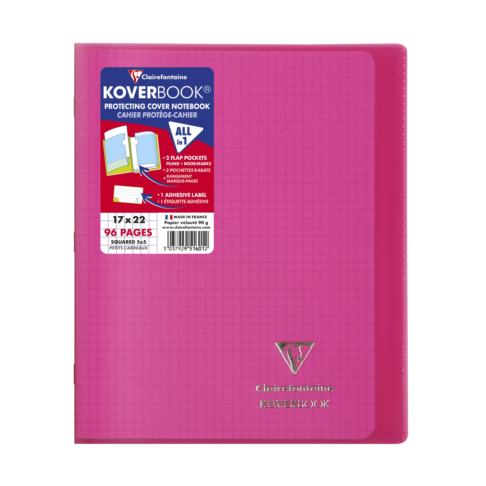 Zeszyt Koverbook Clairefontaine w kratkę w formacie 22 x 17 cm z okładką z PP w 10 kolorach (czarny, biały, zielony, żółty, pomarańczowy, czerwony, różowy, fioletowy, niebieski i jasnoniebieski). To doskonałe połączenie wyjątkowej jakości i funkcjonalności. Zawiera 48 kartek o idealnie satynowym wykończeniu, które nie tylko zapewniają doskonałą gładkość pisania, ale także eliminują prześwitywanie i przebijanie atramentu. Charakterystyczny papier Clairefontaine o gramaturze 90g/m2 gwarantuje doskonałe efekty pisania zarówno ołówkiem, długopisem jak i piórem wiecznym i atramentem. Kolor nadruku został precyzyjnie dobrany, aby zapewnić optymalny kontrast pomiędzy liniaturą a papierem, minimalizując obciążenie wzroku. Spiralna oprawa umożliwia pełne otwarcie zeszytu, co jest idealne do wykorzystania obu stron kartek.