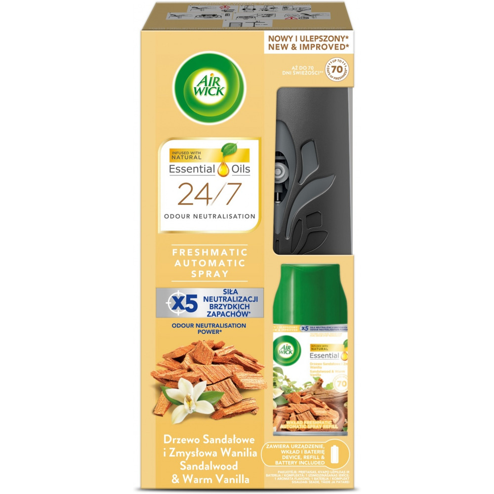 Automatyczny odświeżacz powietrza AIR WICK FRESHMATIC komplet z wkładem, drzewo sandałowe i zmysłowa wanilia, 250 ml