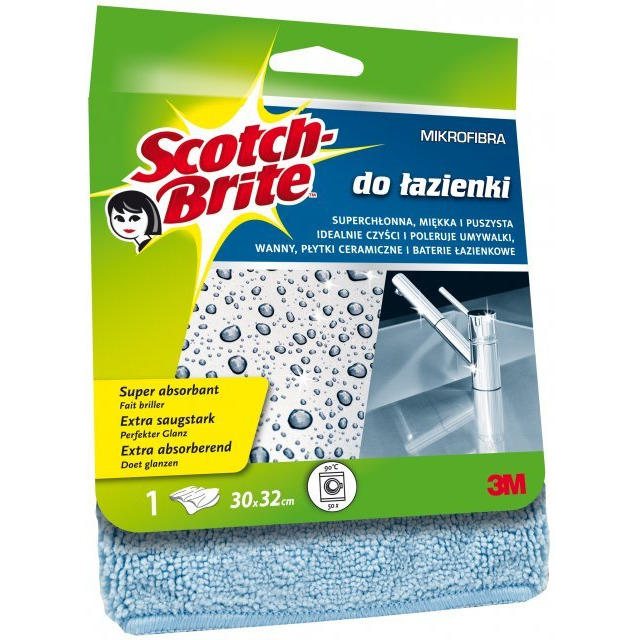 wysokiej jakości ściereczka wykonana z mikrofibry seria Scotch Brite to innowacyjne rozwiązania, które pomagają utrzymać każde pomieszczenie w czystości idealnie czyści i poleruje umywalki, wanny, płytki ceramiczne i baterie łazienkowe superchłonna, miękka i puszysta rozmiar: 300x320mm kolor jasnoniebieski