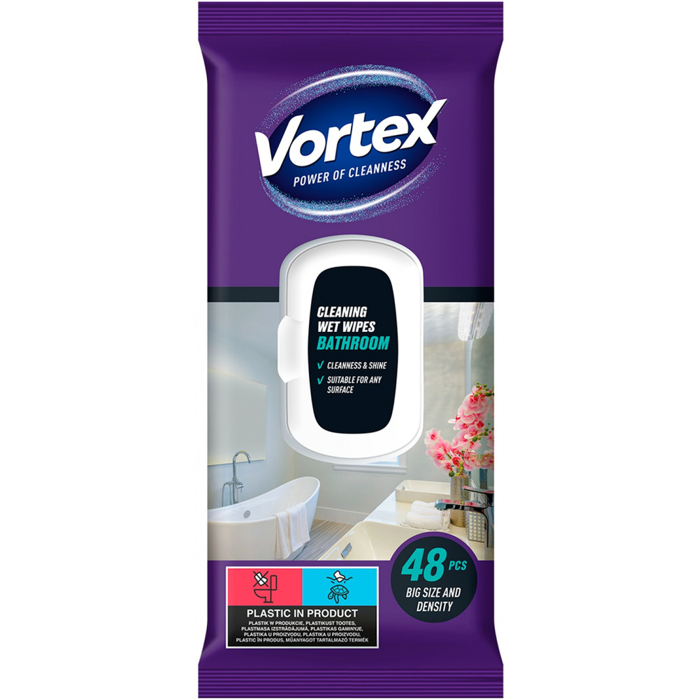 Chusteczki nawilżane VORTEX, do łazienki, z klapką, 48 szt.