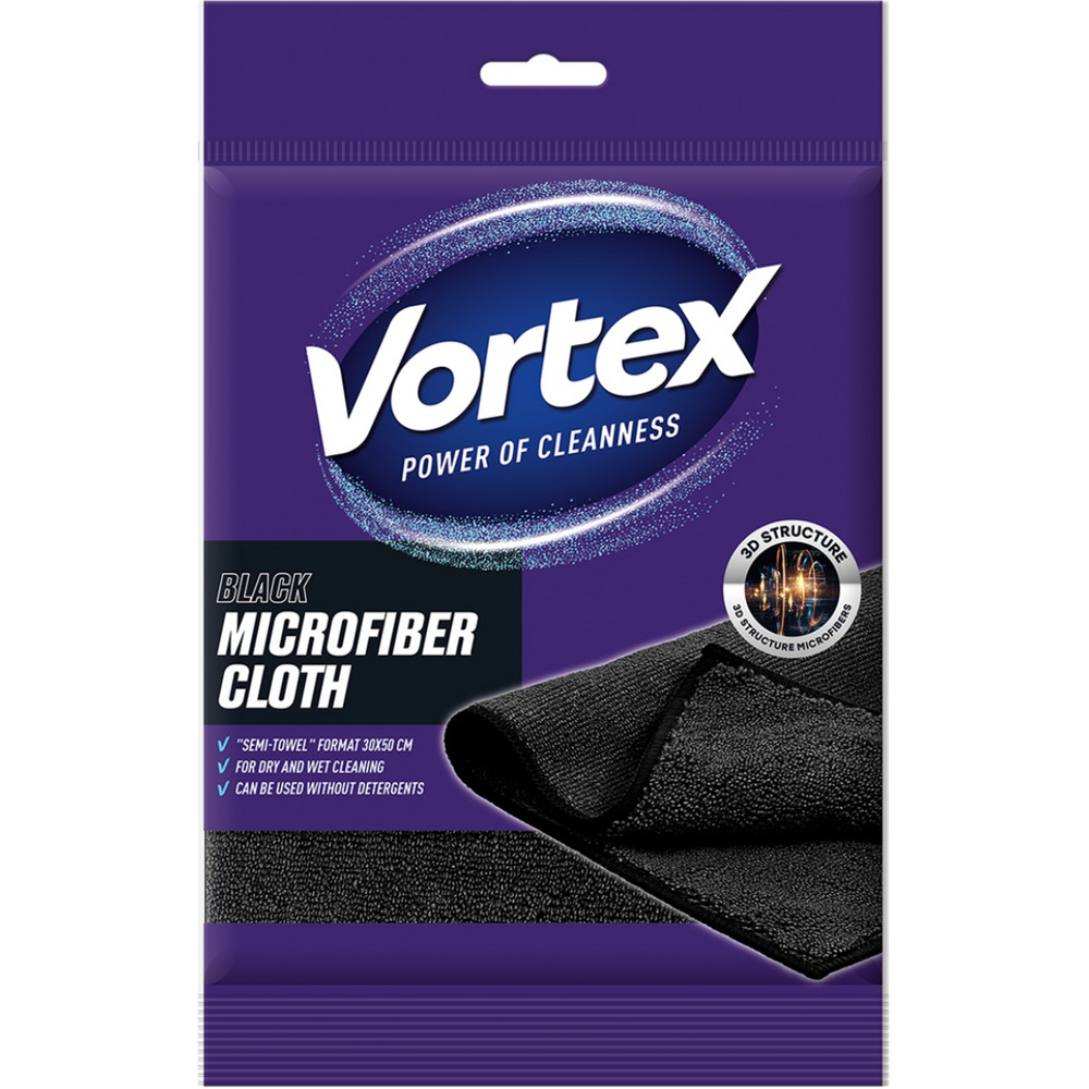 Ściereczka z mikrofibry VORTEX, półręcznik, 30x50cm, czarna