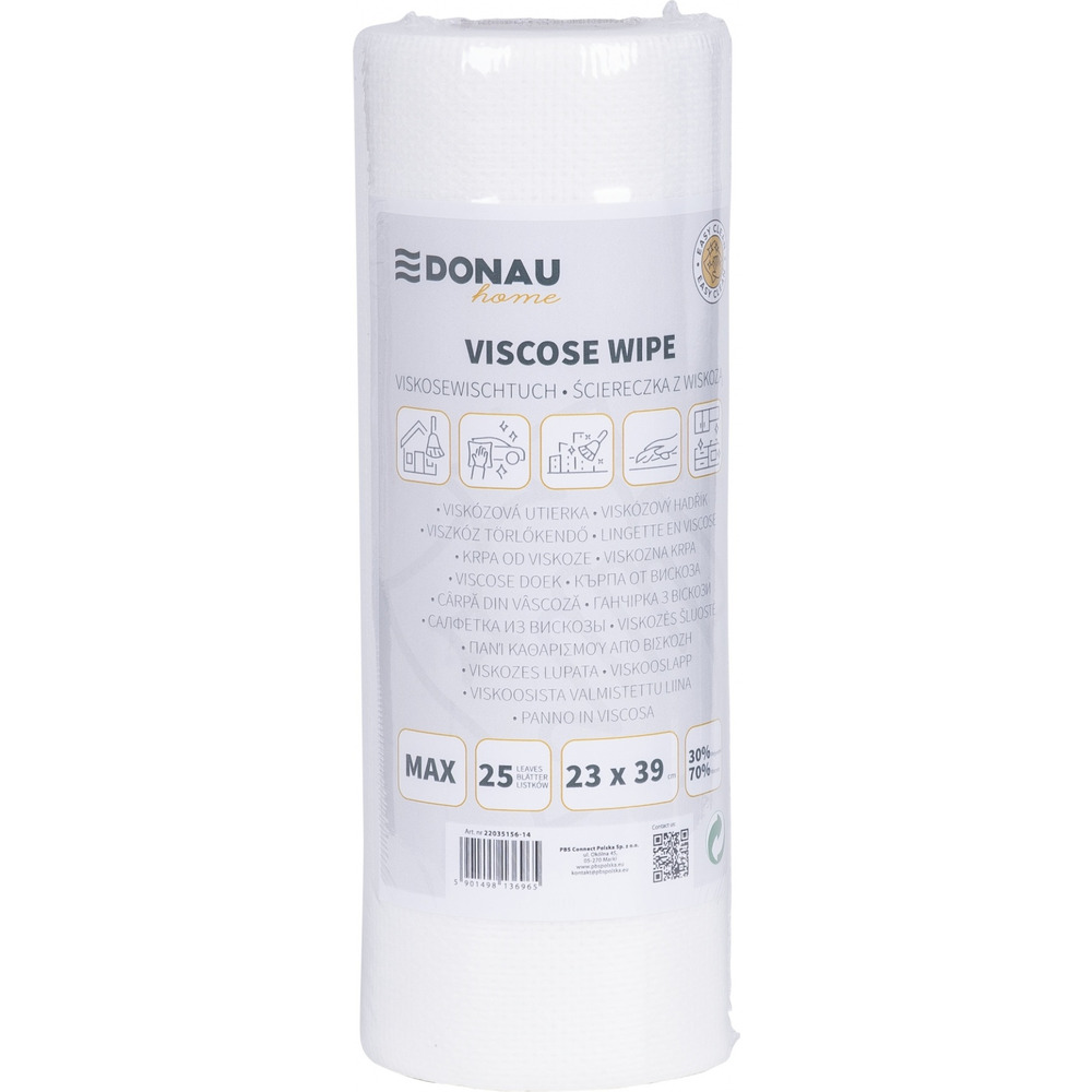 Ścierka DONAU HOME, z wiskozą 70%, rolka, max, 23x39cm, 25 listków, biała