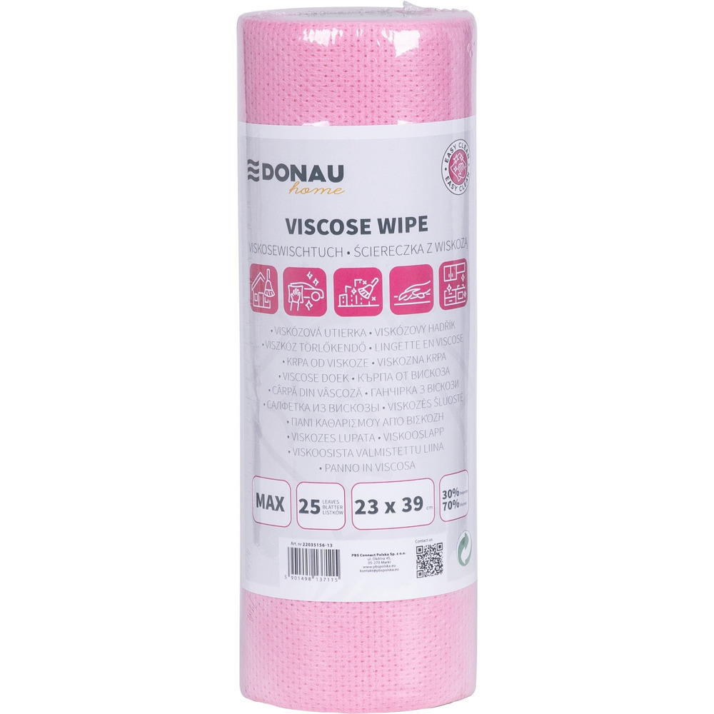 Ścierka DONAU HOME, z wiskozą 70%, rolka, max, 23x39cm, 25 listków, różowa