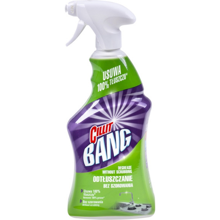 Cillit Bang Odtłuszczanie bez szorowania 750 ml ? niezawodny spray czyszczący do tłuszczu i kuchni 2x skuteczniejsze odtłuszczanie* bez szorowania nowa formuła usuwa osady z mydła i brud idealny do: blatów, płyt i rusztów kuchennych, patelni i piekarników, lodówek, grilla, okapów, płytek, szafek i drzwi, stali nierdzewnej, szkła (spłukać po użyciu) *w porównaniu do wcześniejszej formuły Cillit Bang Tłuszcz i smugi, spray